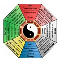 Восьмиугольник Багуа позволяет разделить участок на дявять функционально- различных секторов с центром на возвышенности. Такой подход позоляет создать многоплановую перспективу из центра композиции. Каждая такая зона по теории феншуй отвечает за определенные сферы жизни и относится к одной из стихий.