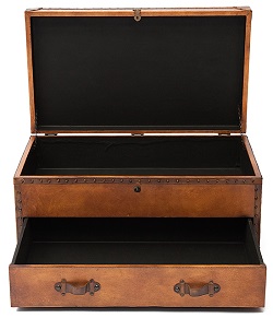 Столик-сундук из дерева и кожи с ящиками с элементами ковки, в стиле винтаж.