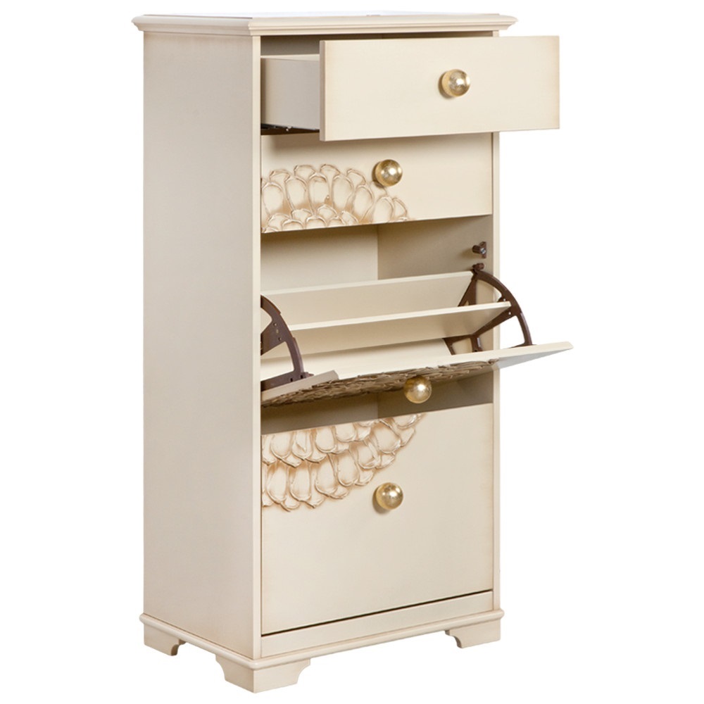 Тумба с 2-мя обувницами и 2-мя верхними выдвижными ящиками, выполненная в технике скульптурной живописи широкими мазками (методика «объемного рисунка»).