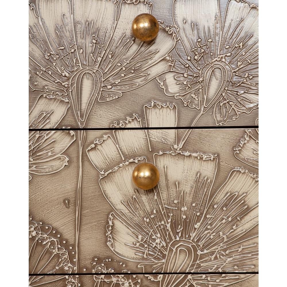 Комод с 3-мя выдвижными ящиками на ножках с элементами декора в виде цветков мака с мотивами старины.