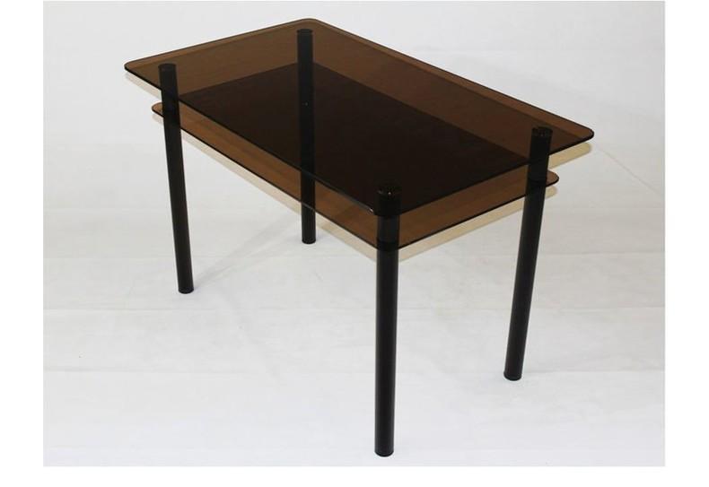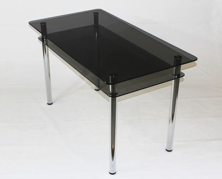 Обеденный стеклянный стол со столешницей прямоугольной формы.