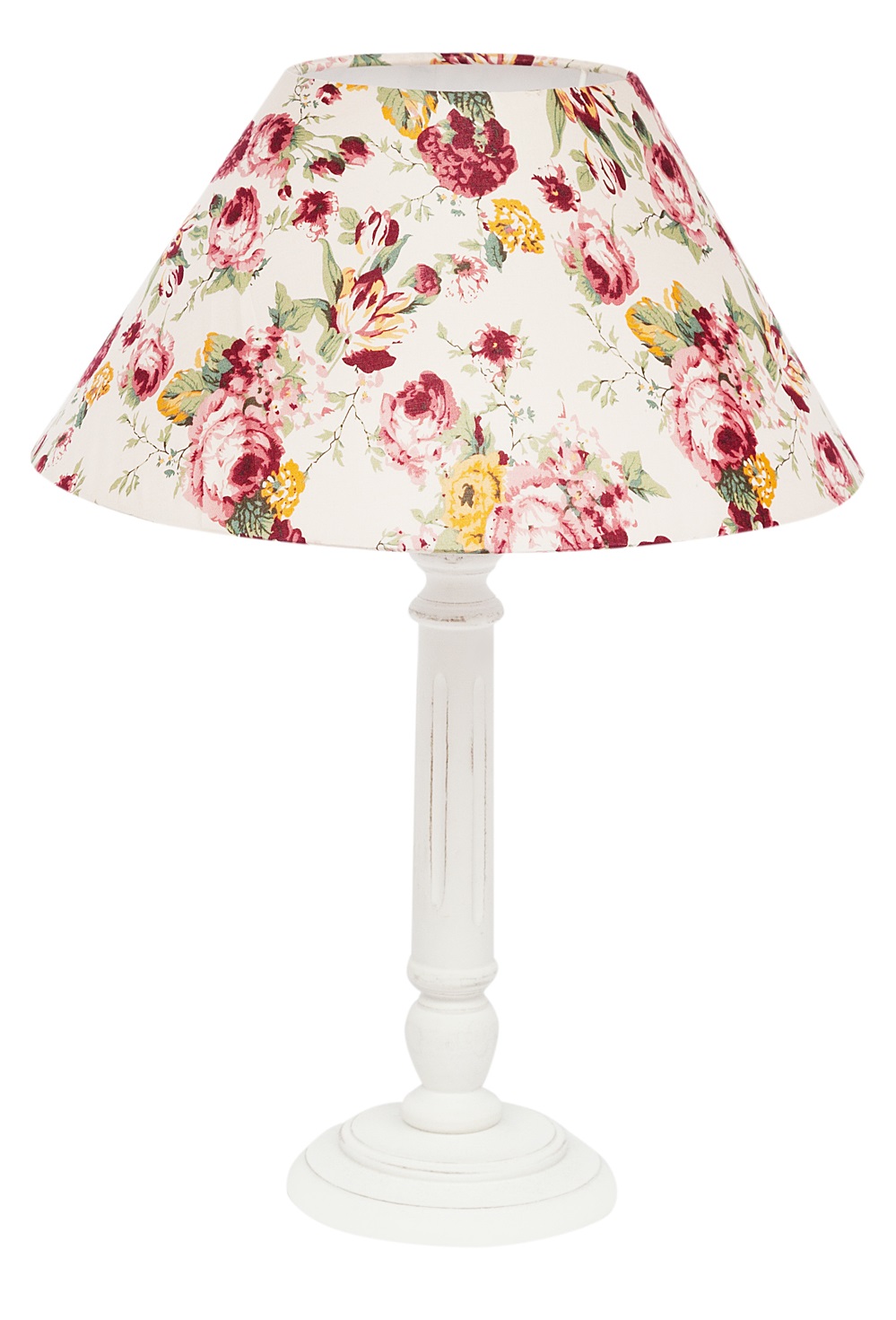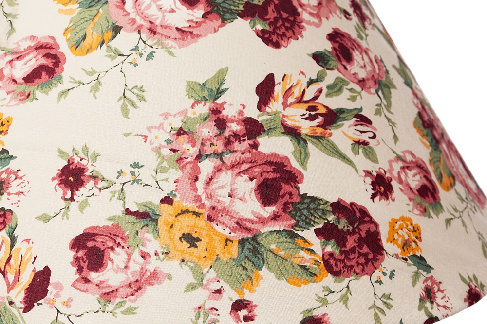 Абажур выполнен из хлопковой ткани с цветочным принтом.